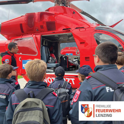 Am Samstag, den 11. Oktober 2025, machte sich die Feuerwehrjugend der FF Lenzing auf einen ganz besonderen Ausflug: Wir durften den Notarzthubschrauber „Martin 3“ (Martin III) am Stützpunkt Scharnstein besuchen – ein spannendes Erlebnis für Jung und Alt.